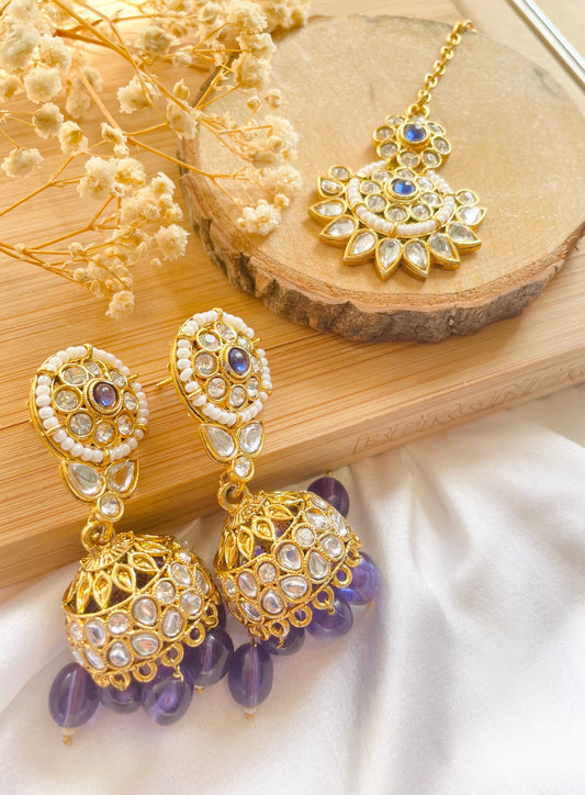 Royal Lavender Gold Plated Kundan Necklace Set