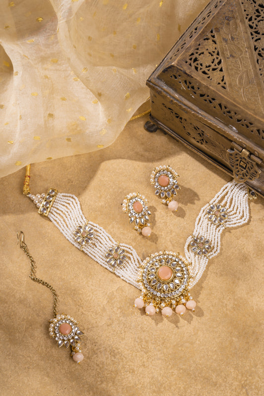 Shahi Pink Gold Plated Kundan Necklace Set