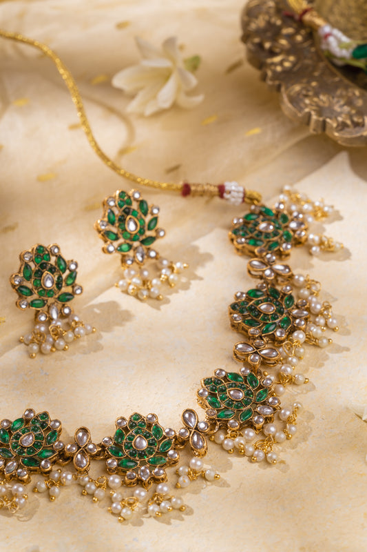 Sadaf Gold Plated Jadau Necklace Set
