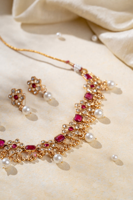 Ameera Gold Plated Kundan Necklace Set