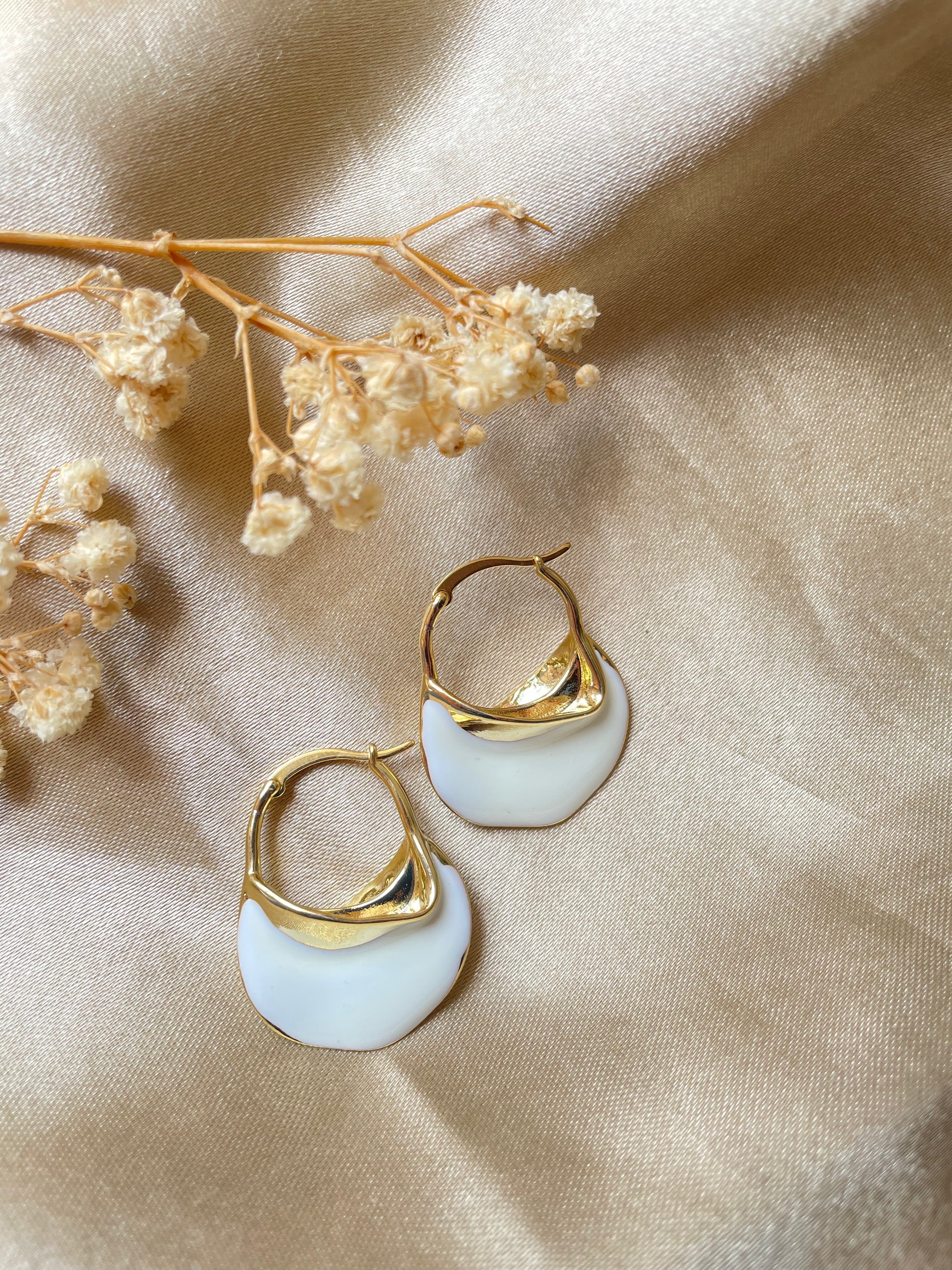 A vision of timeless elegance and simplicity. These exquisite earrings embody a graceful fusion of purity and sophistication. Crafted to perfection, they are a testament to understated luxury.